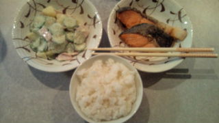 鮭が半額だったので塩鮭!と昨日のポテサラ