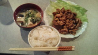 豚肉の生姜焼きと、豆腐とわかめのお味噌汁