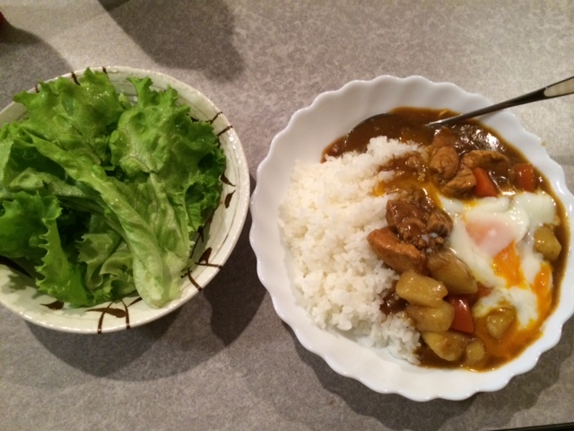 チキンカレー温玉のせ~、また温玉崩れちゃった…