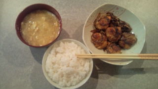と、じゃがいもと玉ねぎの味噌汁。
